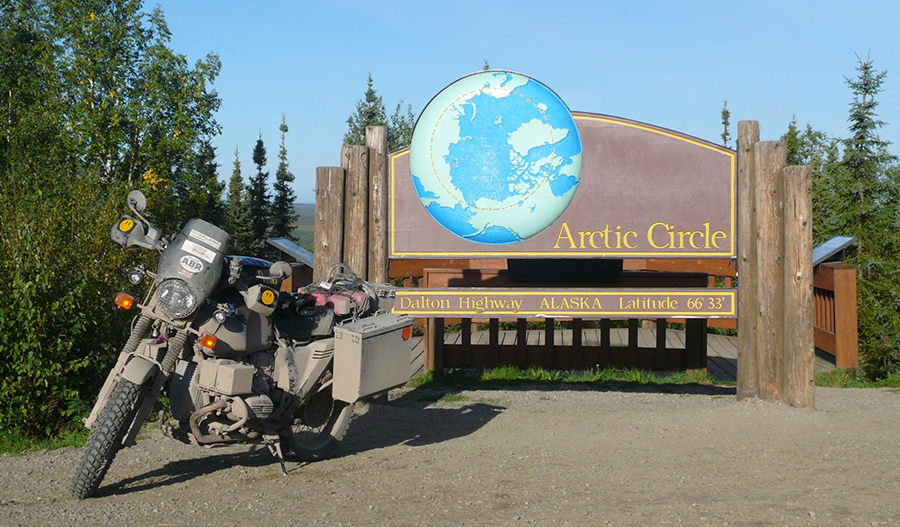 Fortunately, I conquered the Dalton Highway, and when I rolled back into Fairbanks, Alaska, my next challenge awaited: the Top of the World Highway, leading north into the Yukon, Canada. As an added adventure, I crossed the Arctic Circle once more, this time along the remote Dempster Highway to Inuvik in Canada’s Northwest Territories—a moment that felt both familiar and extraordinary.
