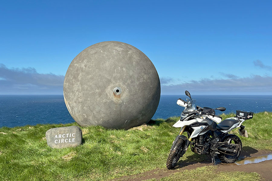 Next on the list was Iceland. After further research, I discovered that the main island doesn’t actually extend into the Arctic—only Grimsey Island, just north of the mainland, crosses the Arctic Circle. I planned my visit accordingly, just before joining a group of riders touring the Icelandic mainland and since this ride involved much more off-road terrain, I opted for a smaller, lighter bike: a BMW G310GS.