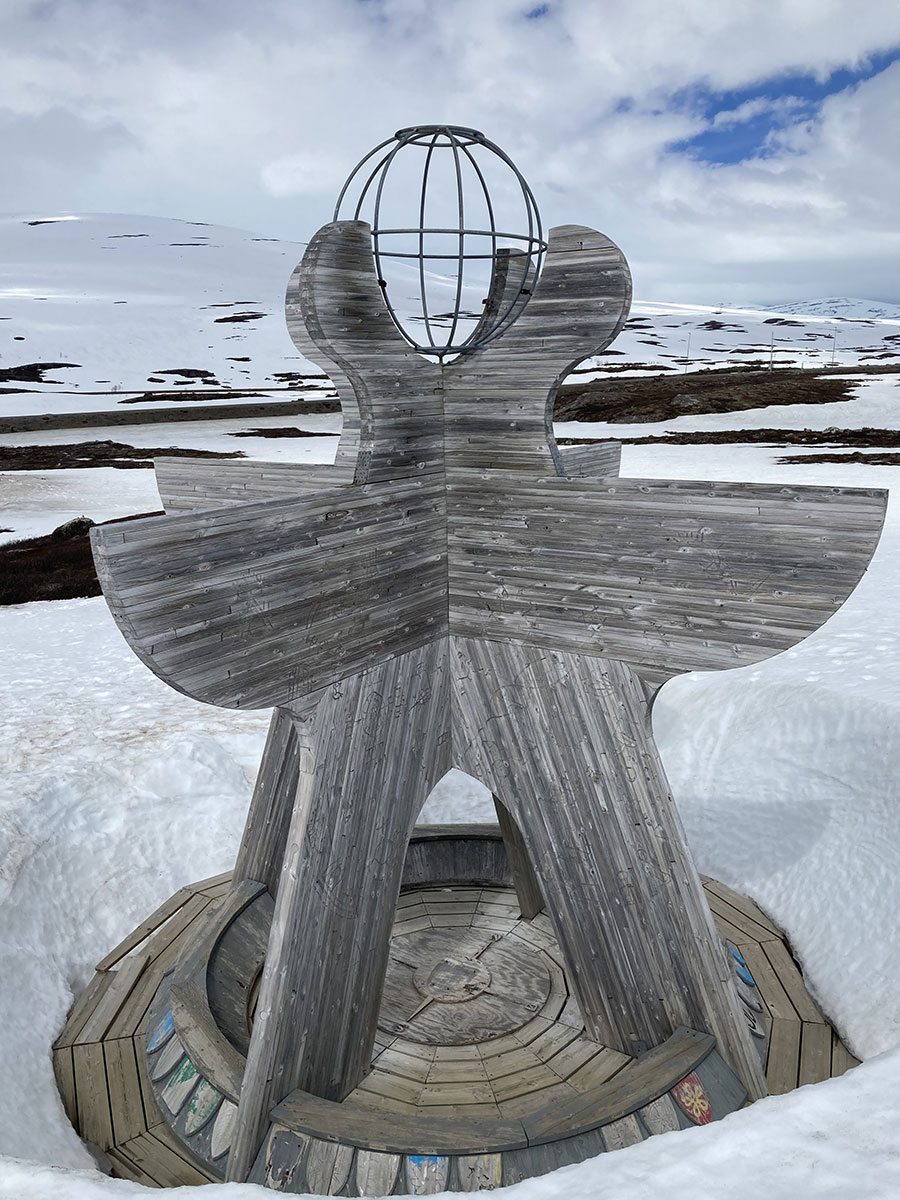 I heeded her advice and waited until the next day. After unloading all my luggage, I set off northbound along the designated, but still slippery, track until I reached the Arctic Circle marker—a unique, moving sculpture called Orbis et Globus (Latin for “Circle and Sphere”), designed to reflect the shifting position of the Arctic Circle.